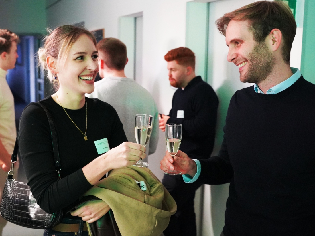 In stilvoller und zugleich vertrauter Atmosphäre versammelten sich Alumni, Kommiliton:innen, Dozierende und die Campus-Teams, um Erinnerungen auszutauschen, besondere Momente Revue passieren zu lassen und den Übergang in einen neuen Lebensabschnitt bewusst zu feiern. Das persönliche Miteinander stand im Mittelpunkt – ein wertschätzendes Beisammensein mit Drinks und Fingerfood, das Raum für Gespräche und gemeinsame Rückblicke bot.