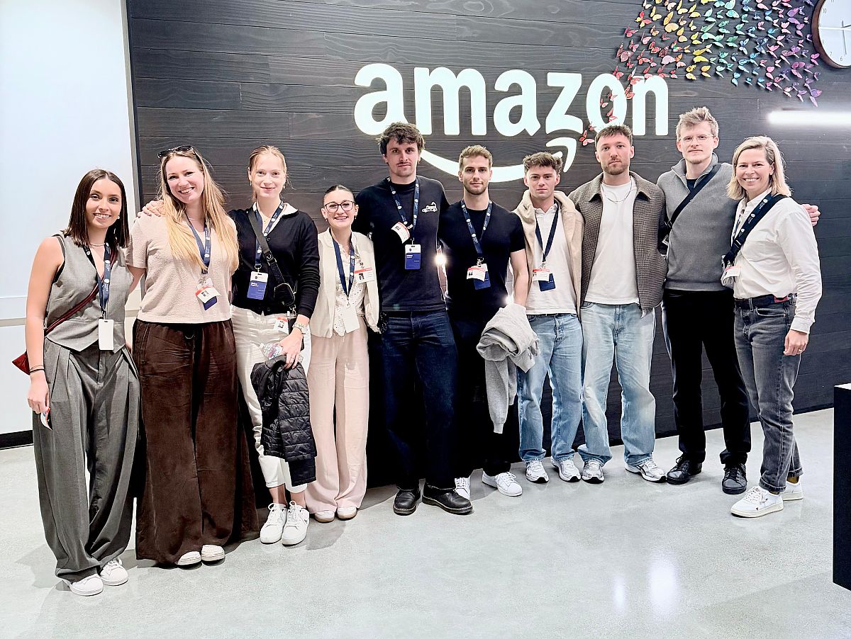 Ein erster Programmpunkt führte die Gruppe zu Amazon Web Services (AWS). Dort bekamen die Studierenden spannende Einblicke in die Arbeitsweise eines der weltweit führenden Cloud-Unternehmen. Besonders beeindruckend war zu sehen, wie selbstverständlich Künstliche Intelligenz bereits in alltägliche Arbeitsprozesse integriert wird – bis hin zur Unterstützung beim Programmieren. Dabei wurde deutlich: Innovation entsteht nicht nur durch neue Technologien, sondern auch durch die Geschwindigkeit, mit der Ideen umgesetzt werden.