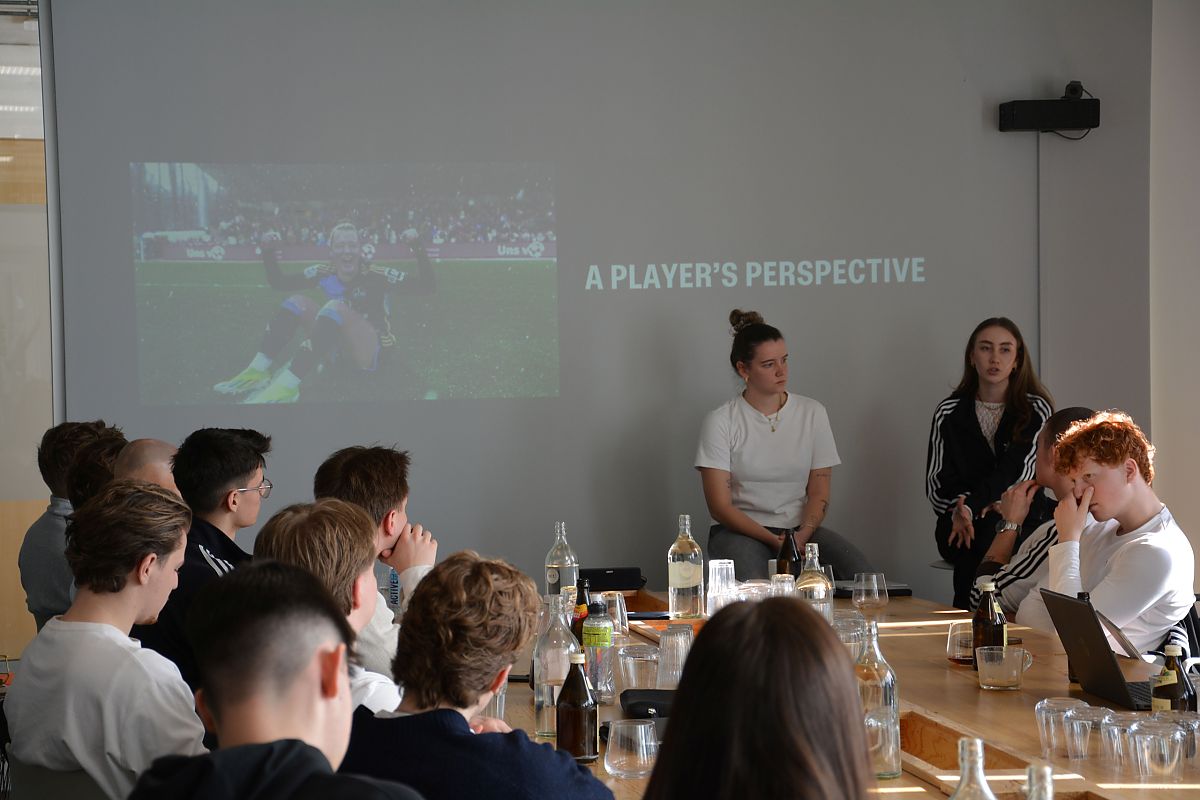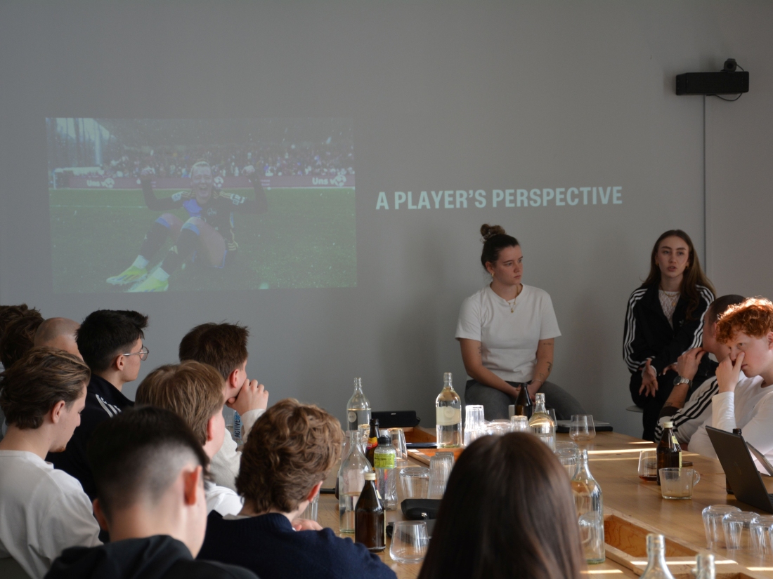 Zu den Speakern gehörten unter anderem Dominik Böttcher von adidas, der Einblicke in die Zusammenarbeit zwischen Marke, Sport und Event gab, sowie Lara Felix, Fußballerin des FC Ingolstadt, die aus ihrer Perspektive als aktive Spielerin über den Profifußball berichtete und Fragen der Studierenden beantwortete.