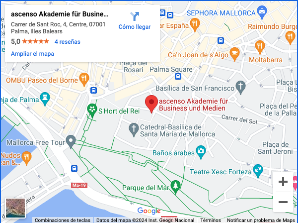 Studieren auf Mallorca? Partner der Campus M University in Mallorca ist die ASCENSO Akademie für Business und Medien, die in Palma deutschsprachige Hochschulstudienprogramme anbietet. An diesem Studienzentrum in Mallorca kannst Du studieren!